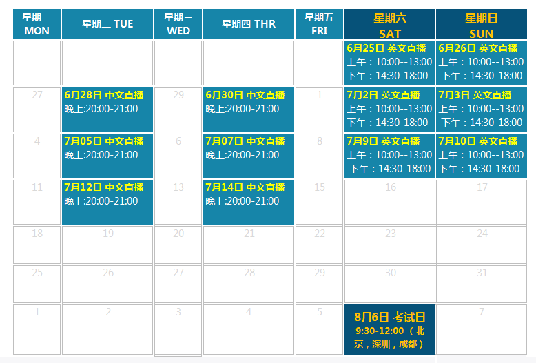 考试日期:8月6日,9:30-12:00 (共2个半小时,北京、深圳、成都考场线下闭卷考)