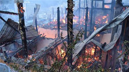 四川康定一居民区现场火光冲天 房子烧成光架架