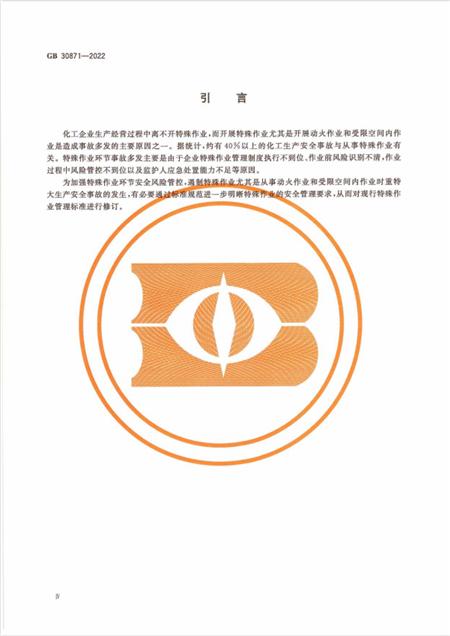 近日,国家市场监督管理总局(国家标准化管理委员会)发布公告,批准发布《危险化学品企业特殊作业安全规范》(GB 30871-2022)。作为国家强制性标准,新规范将于2022年10月1日起正式实施 ,代替当前现行的《化学品生产单位特殊作业安全规范》(GB 30871-2014)。